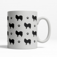 This Japanese Chin coffee cup / mug features an amazing pattern of Japanese Chin silhouettes and dog paws which wrap around the mug.